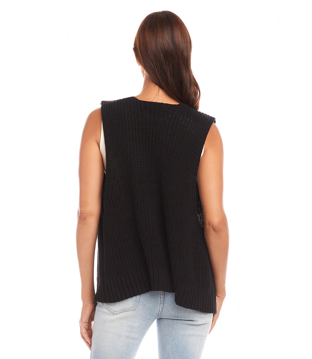This versatile Open Sweater Vest is made of comfortable cotton, with a stylish contrast woven design. Perfect for a casual and effortless look. Whether layering over a shirt or dress, this vest adds both style and comfort to your wardrobe.