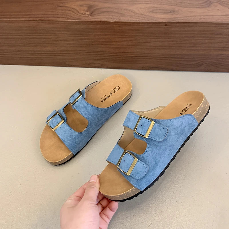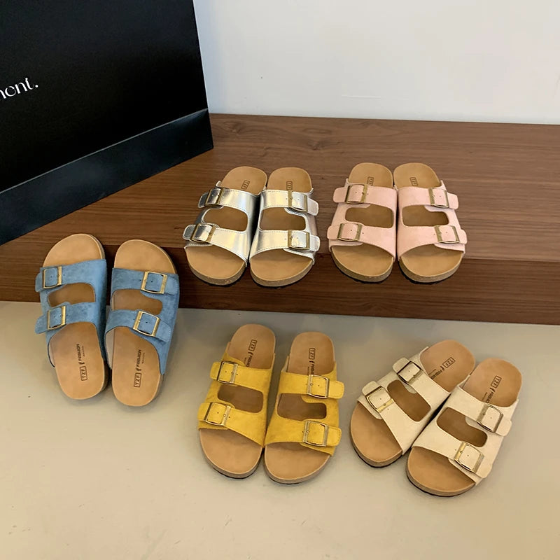 Keep it casual and comfy with the Piper Double Buckle Clogs. These cork-style clogs feature a soft feel, open toe, and secure double buckle straps for an adjustable fit. The non-slip sole makes them perfect for everyday errands, beach walks, or relaxing at home. A simple summer favorite you’ll wear on repeat.